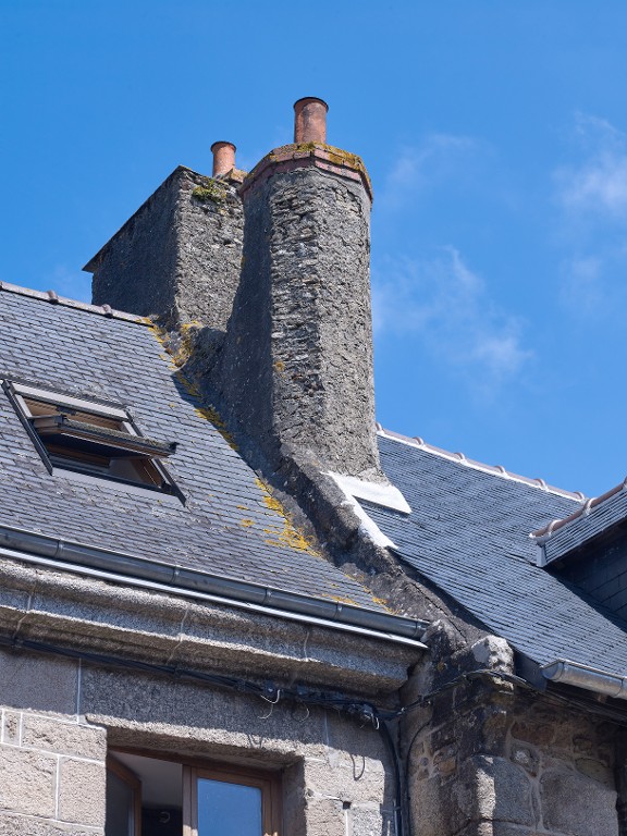 Souche de cheminée de forme octogonale, insérée dans le mur pignon gauche du n°43 Grande Rue.Immatriculation