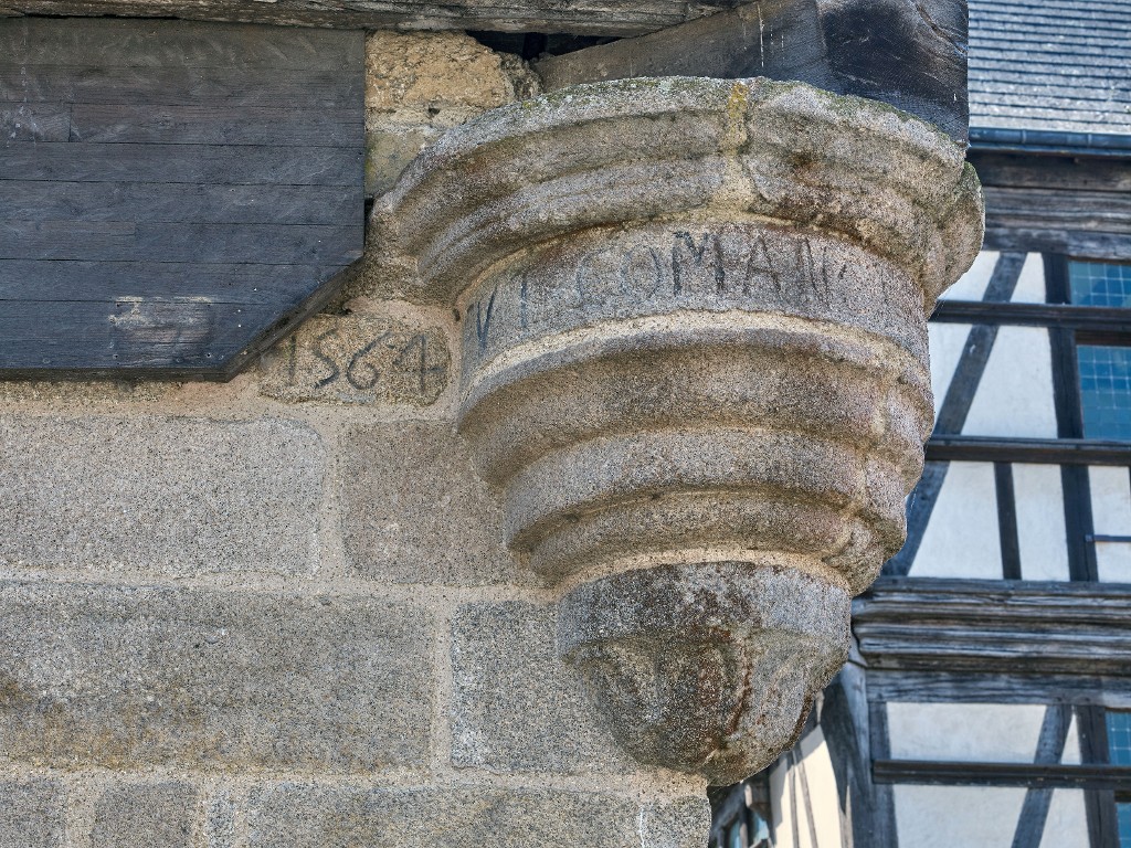 Ce qu'il reste de l'inscription indique une date : 1564 et "fut comance" (le reste se poursuit sur l'autre face).Immatriculation