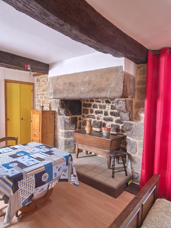 Cheminée sur le mur pignon nord, au premier étage. Les jambages sont largement chanfreinés et leurs congés font écho aux consoles à ressauts.Immatriculation