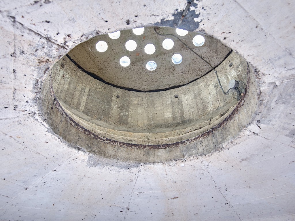 Vue intérieure : poste d'observation et de tir circulaire. Lors de la transformation du bunker en cave, le poste d'observation a été couvertImmatriculation