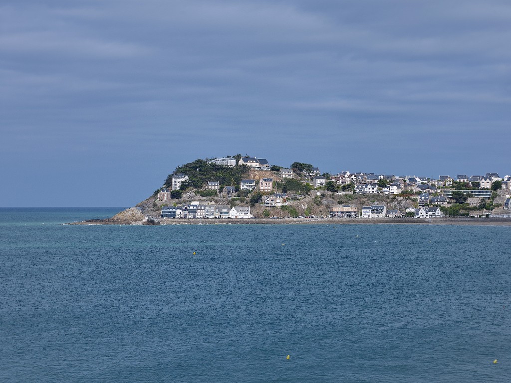 Vue du panorama depuis la pointe de la Guette : la pointe de Pléneuf. Un bunker-observatoire d'artillerie est notamment implanté sur cette pointeImmatriculation