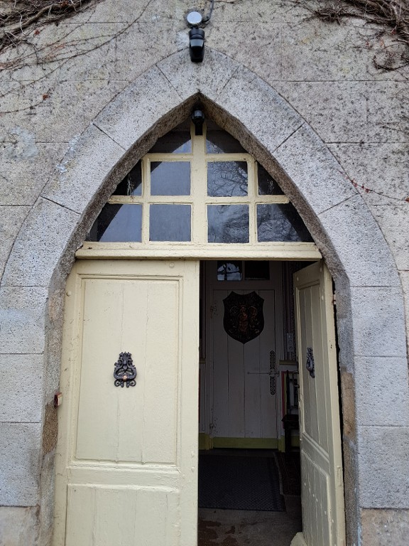 Pavillon Renaissance, façade ouest, entrée, porte en granite taillée en arc briséImmatriculation