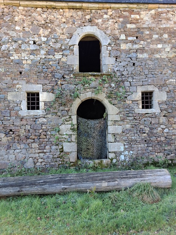 Dépendances, façade est, détail : baies cintrées en granite de taille.Immatriculation