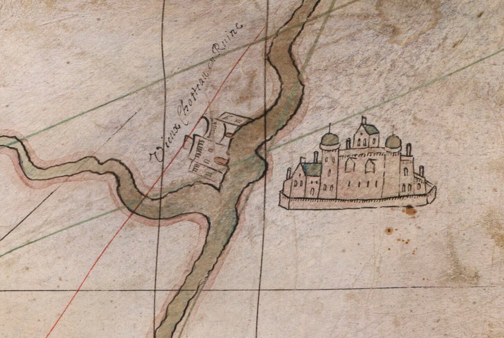 Représentation des châteaux la Roche-Jagu (à droite) et Frynaudour (extrait du plan de l'Île de Bréhat et de la rivière de Pontrieux par Pierre Collin, 1666)Immatriculation