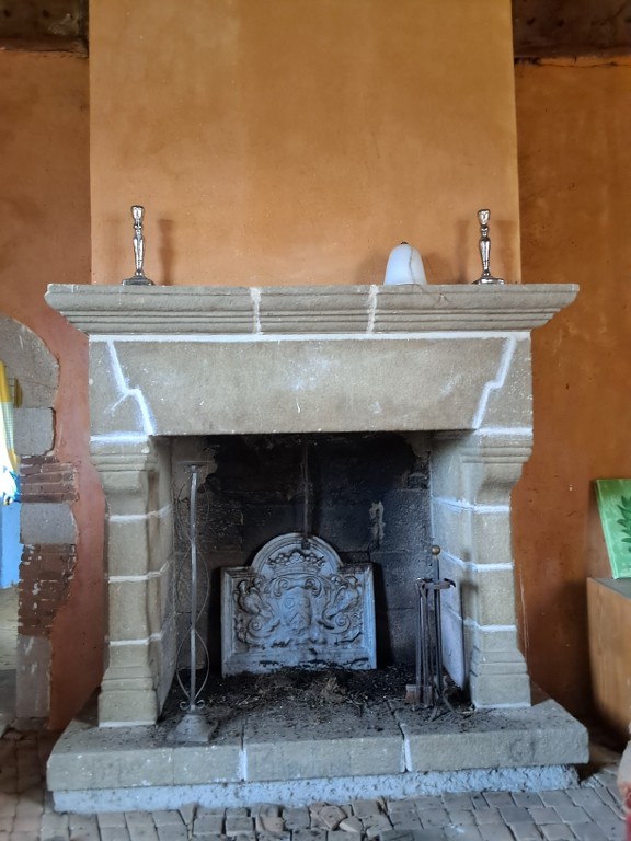 Premier étage, partie est, première salle à gauche de l'escalier, détail : cheminée avec bandeau et tablette en granite de tailleImmatriculation