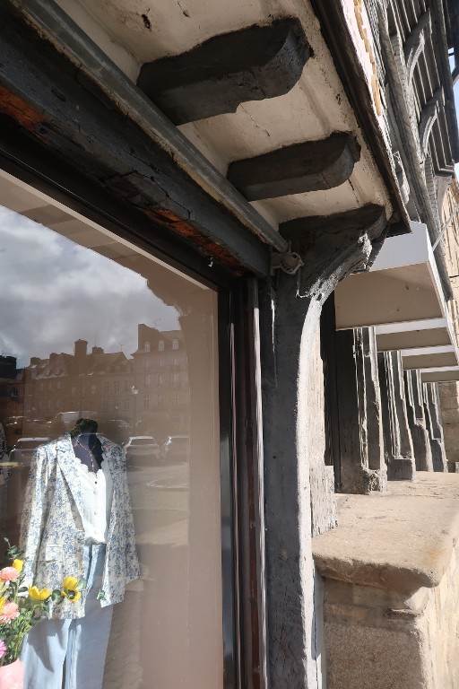 Encorbellement sur solives, soutenu au rez-de-chaussée par des poteaux.Immatriculation