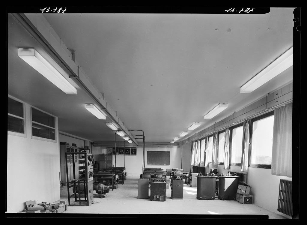Une salle de classe : mécanique électrique. Photographie Heurtier pour la société EGELEC, avril-mai 1967.Immatriculation
