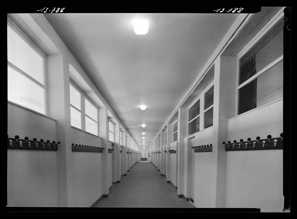 Un couloir central. Photographie Heurtier pour la société EGELEC, avril-mai 1967.Immatriculation
