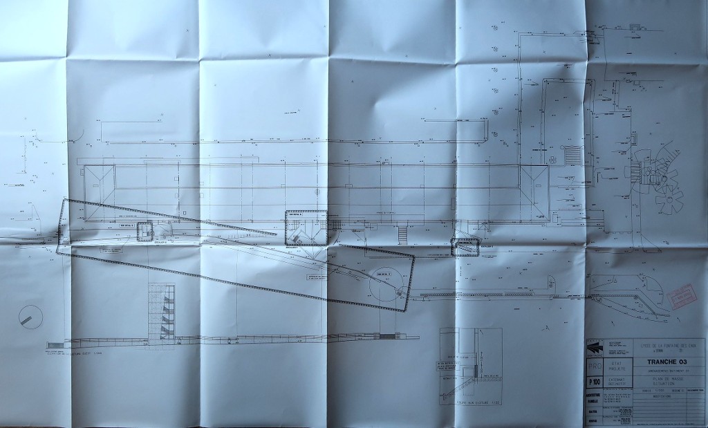 Aménagement du bâtiment 1 (internat-externat), tranche 3. Plan de masse et situation. Architecture plurielle (Thierry Soquet), architecte, 1999.Immatriculation