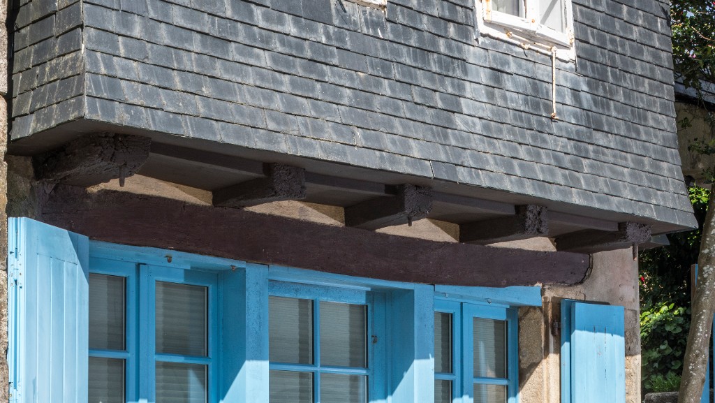 Des solives portent l'encorbellement prononcé de l'étage.Immatriculation