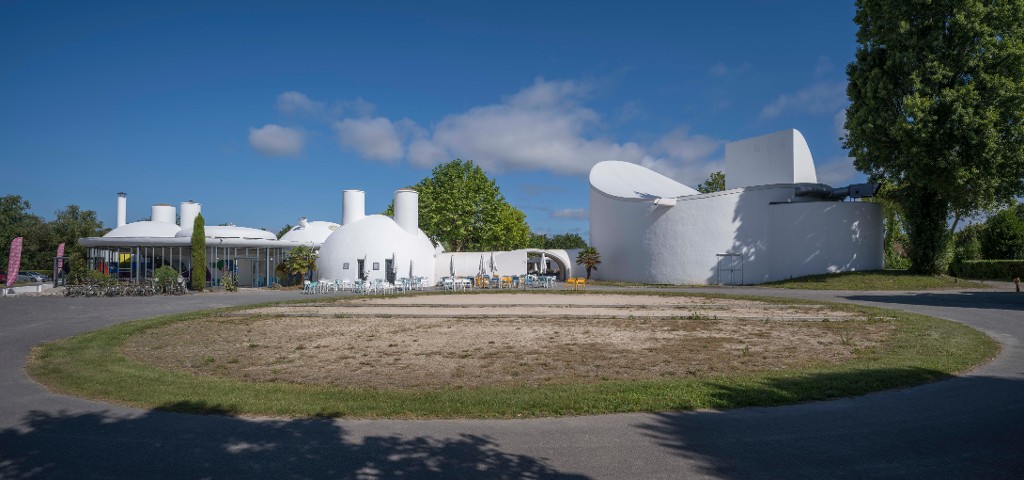 L'anneau-verrière de l'accueil, les bulles blanches des salons et la toiture-vague de la salle de réunion déclinent le motif du cercle et de la courbe.Immatriculation