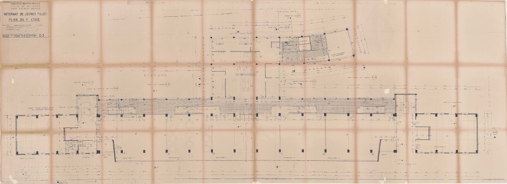 Internat de jeunes filles. Plan du premier étage. Raymond Lopez, architecte, 1952.Immatriculation