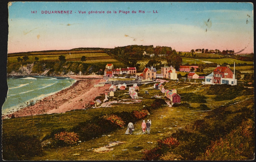 Plage du Ris, carte postale colorisée, début du XXe siècle, collection du Musée de Bretagne.