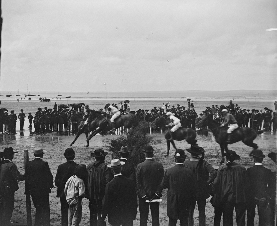 Course d'obstacles, plage du Ris, début XXè siècle.