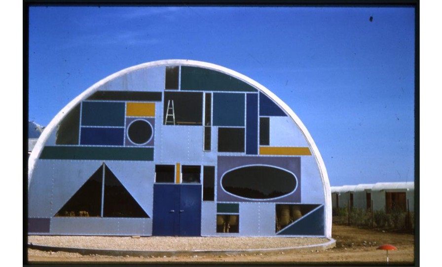 Les interventions colorées de Vera Székely répondent au blanc utilisé dans l'architecture du village : ici, le club adolescents.Immatriculation
