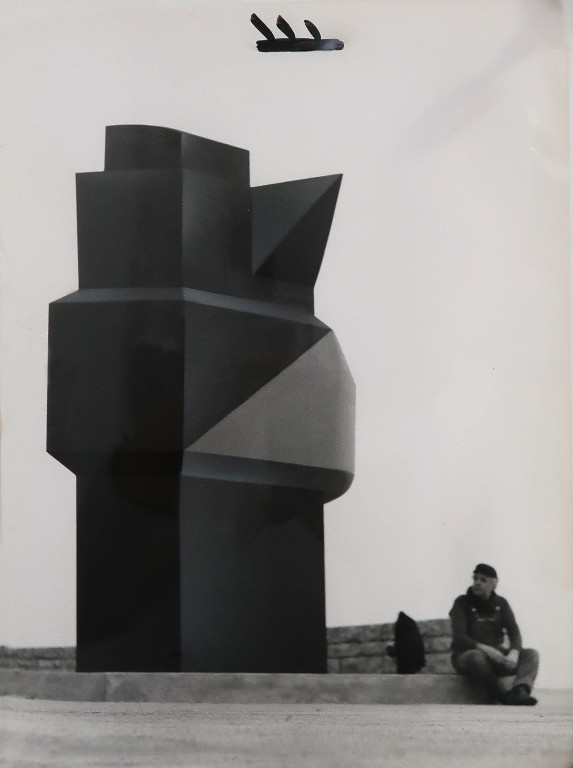 Emile Gilioli, maquette pour une sculpture en tôle, 1967. La photo de l'artiste donne une indication sur l'échelle.Immatriculation