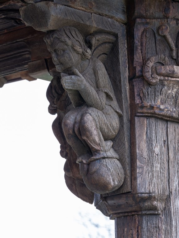 Console sculptée d'un ange les mains jointes.Immatriculation