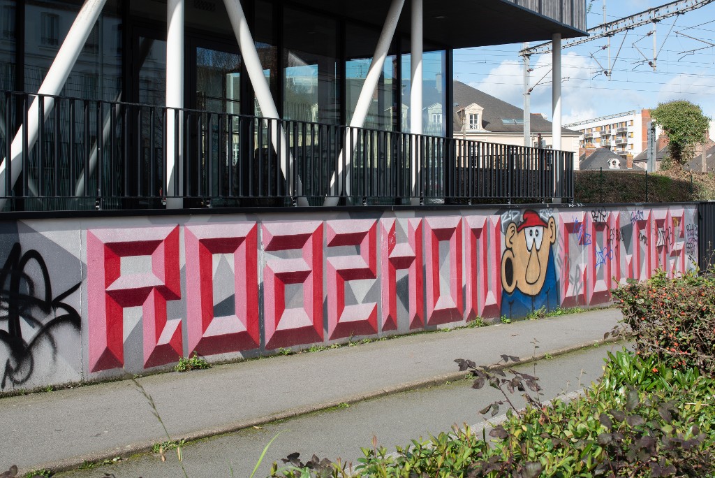 Peintures murales près du pont de Nantes.Immatriculation