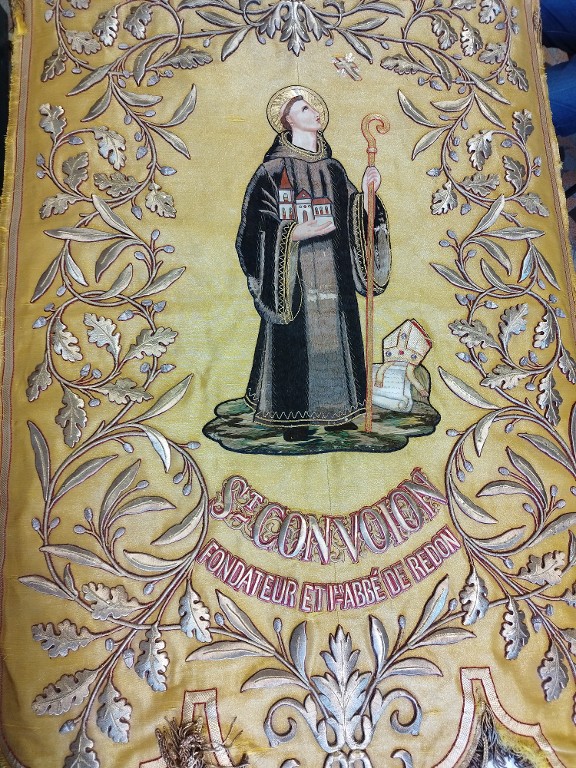 Bannière de procession : saint Convoïon, Immaculée Conception, abbatiale Saint-Sauveur (Redon),