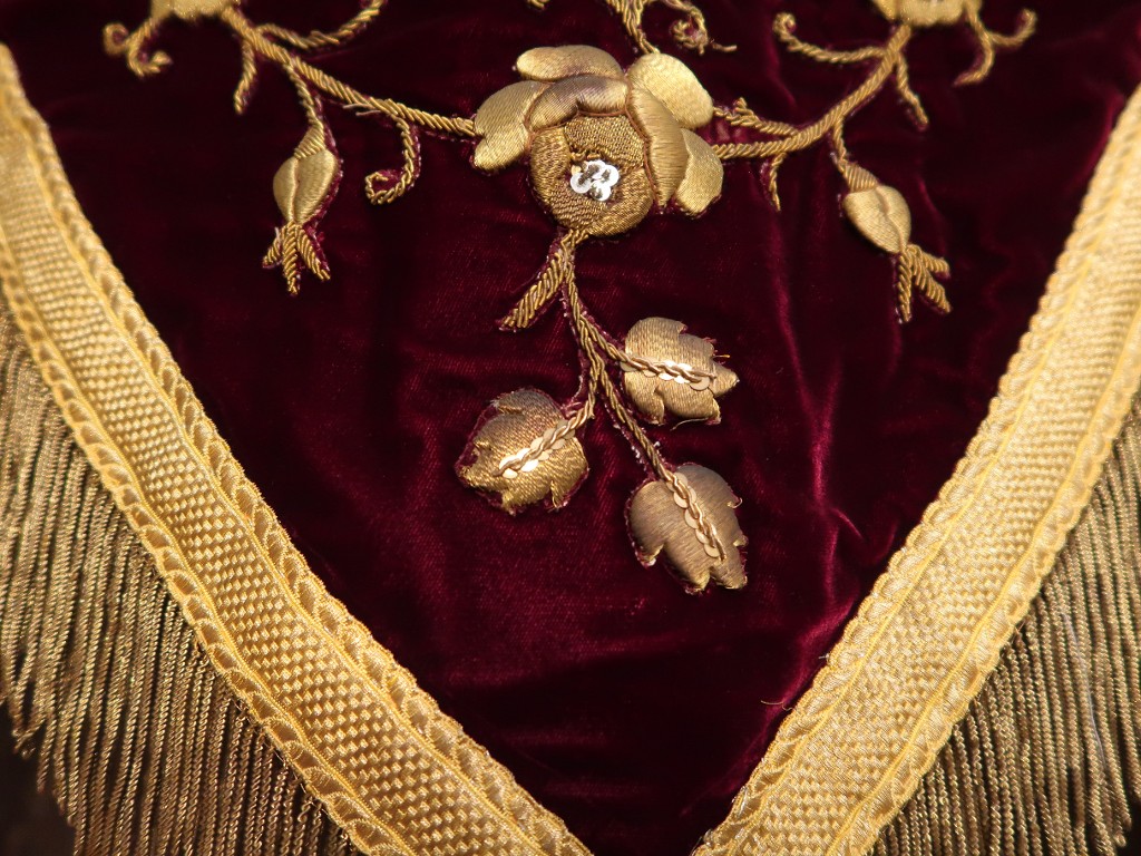 Détails de fleurs brodées au fil métallique doréImmatriculation