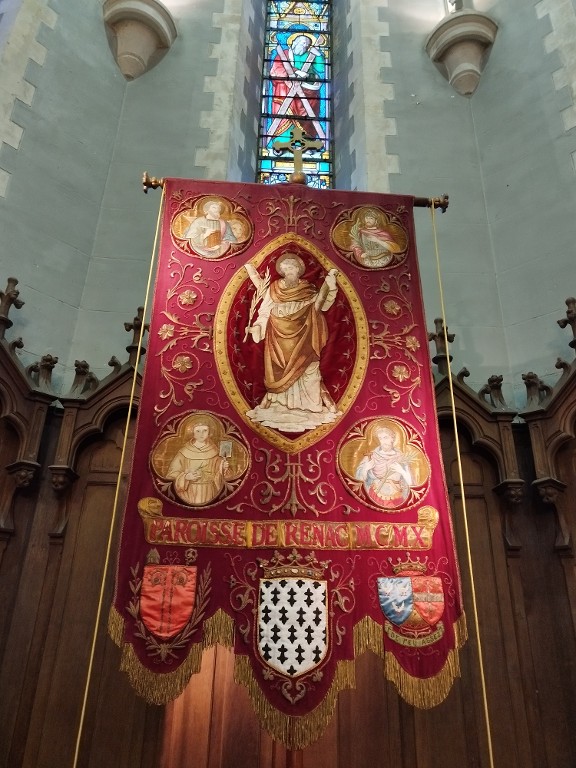 Bannière de procession paroissiale : Christ enseignant avec Sainte Famille, saint André, église Saint-André (Renac),