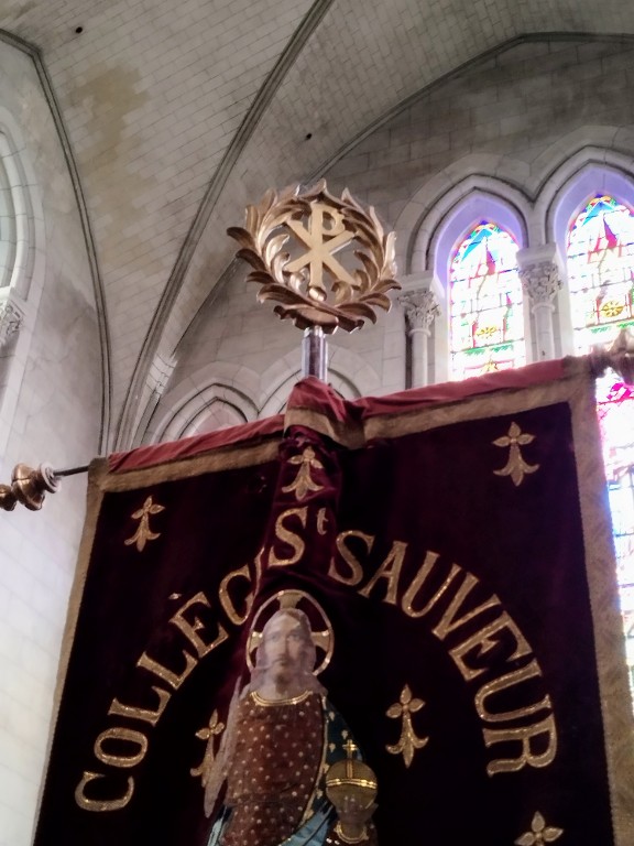 Bannière de procession : Collège Saint-Sauveur, Association catholique des anciens élèves, chapelle des congrégations, lycée Saint-Sauveur (Redon),