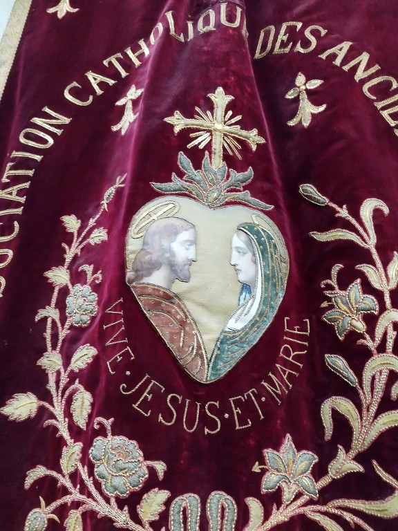 Bannière de procession : Collège Saint-Sauveur, Association catholique des anciens élèves, chapelle des congrégations, lycée Saint-Sauveur (Redon),