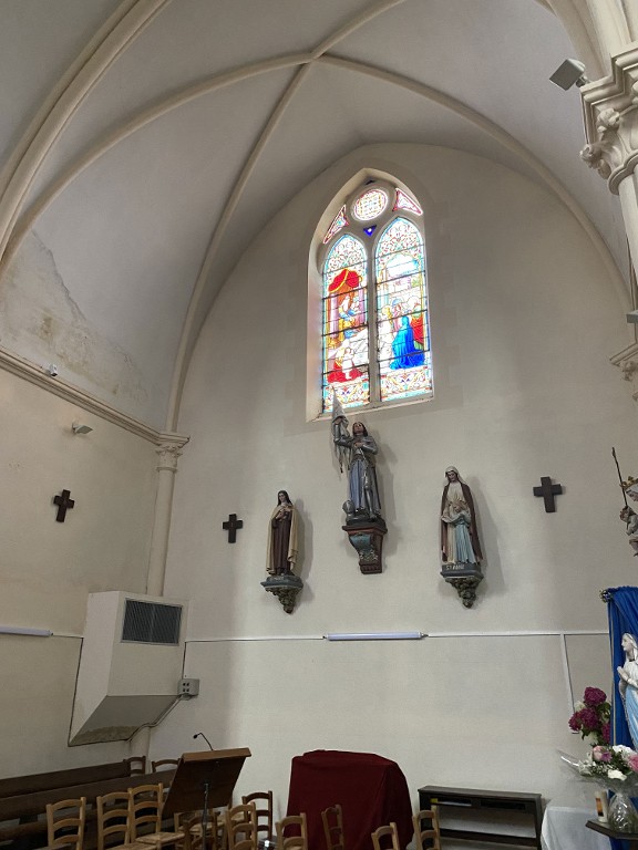 Ensemble de deux verrières à personnages : Présentation de la vierge au temple et Saint Yves, église Saint-Brieuc (Cruguel),