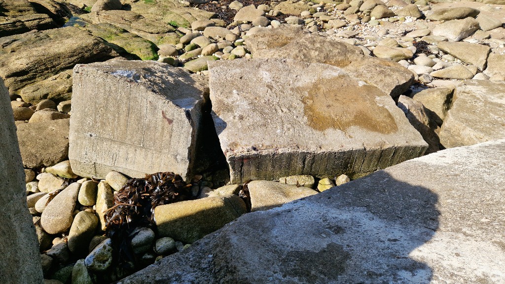 Vue de détail au sud de la grève : éléments disloquésImmatriculation