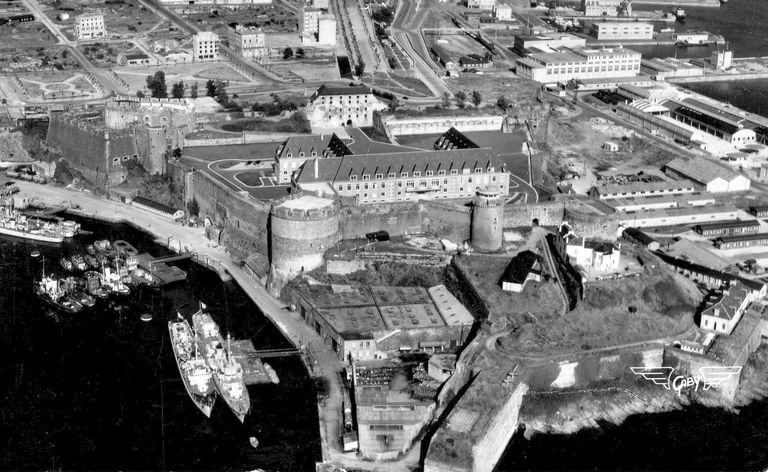 Vue de la Tour Tanguy, de la Penfeld et du château de Brest, carte postale antérieure à 1971