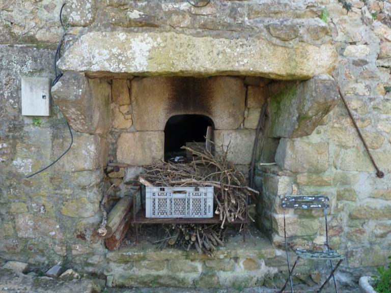 Esquibien, ferme. Cadran solaire daté 1787 sur la souche de cheminée ouest du logis. Forte correction de l'angle pour une exposition plein sud. (2021)