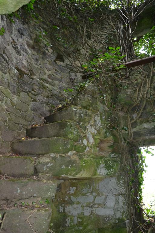 Moulin à eau de Leilzac'h, vestiges. Pignon sud, détail de l'évacuation de l'eau.